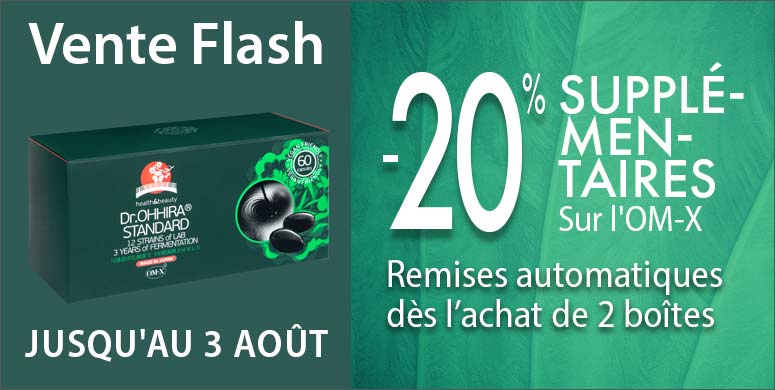 • Dès l'achat de 2 boîtes, la remise supplémentaire de 20% s'appliquera dans le panier.